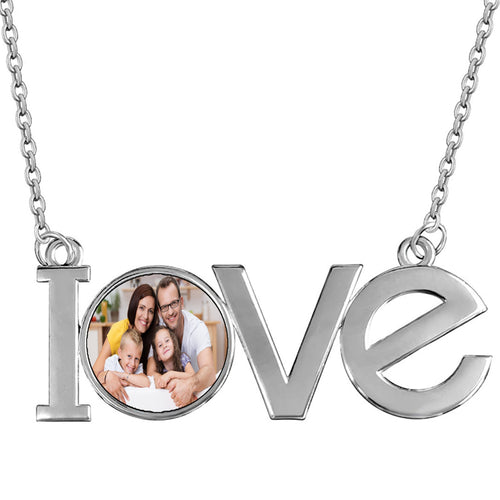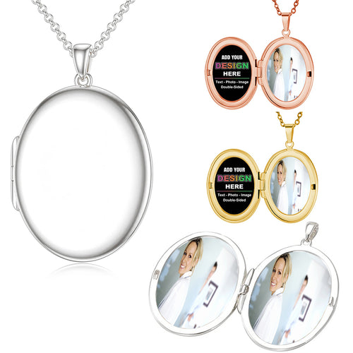 Custom Locket Photo Pendant Memory Necklace | Memorial Personalized Diamond Picture, Water Resistance Stainless Steel Silver Pic Charm -