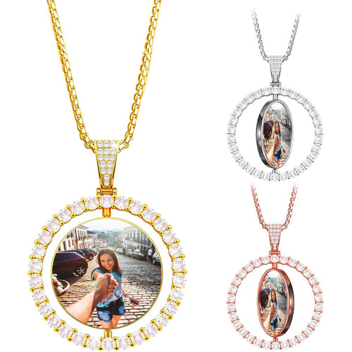 Custom Photo Heart Necklace: Double Sided Swivel Memorial Pendant -