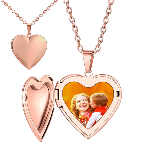 Custom Photo Locket Necklace - Oval & Heart Shaped Locket - /Silver/Rose Personalized Image Necklaces for Women -