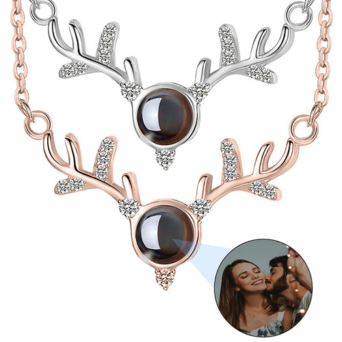 David Star Projection Photo Necklace in / Silver / Rose , CZ Personalized Photo Necklace Sterling Silver Custom Girlfriend Choker -