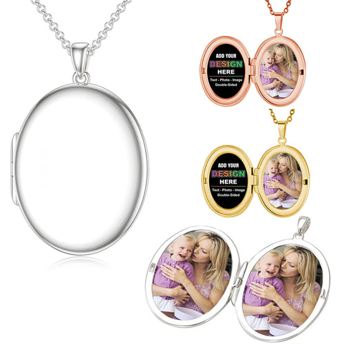 Personalized 2 Photo Birth Flower Locket Necklace Stainless Steel Custom Full Color Photo Oval Pendant Engraved Picture Locket Necklace Memorial Jewelry Gift for Women -