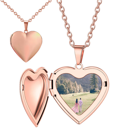 Personalized Heart Locket Necklace - Custom Photo Locket with Engraved Initial - Silver//Rose Keepsake - Memorable Gift for Her -
