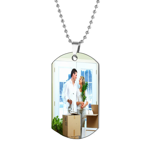 Personalized Heart Fingerprint Photo Picture Text Engraving Custom Dog Tag Urn Memorial Pendant Necklace for Ashes Cremation Necklace 21'' -